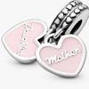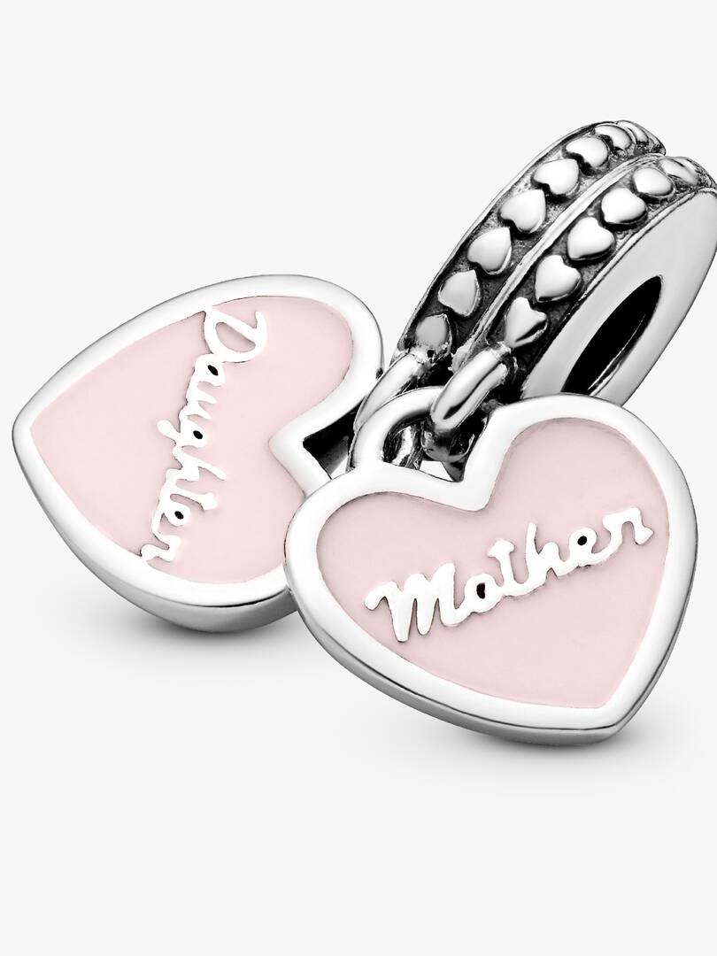 Celebrate the special bond between mother and daughter with this pretty split pendant charm. Crafted in polished sterling silver, it is hand-finished with delicate pink enamel and the words “you are always in my” with a