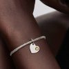 Wear your heart on your sleeve, literally. This sterling silver dangle charm pairs a honey-coloured man-made crystal with a smooth back — a symbol of love and personal meaning.