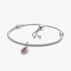 s’ magenta colored man-made crystal at the center. Surrounded by three small cubic zirconia stones on the front and a cut-out heart shape on the back for maximum sparkle. This dazzling dangle charm comes on a matching sterling silver brand Moments Snake Chain Slider Bracelet. Capture the symbolism of an October birthday, milestone or anniversary with this precious set. Unconditionally. Infinitely. Be Love.