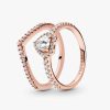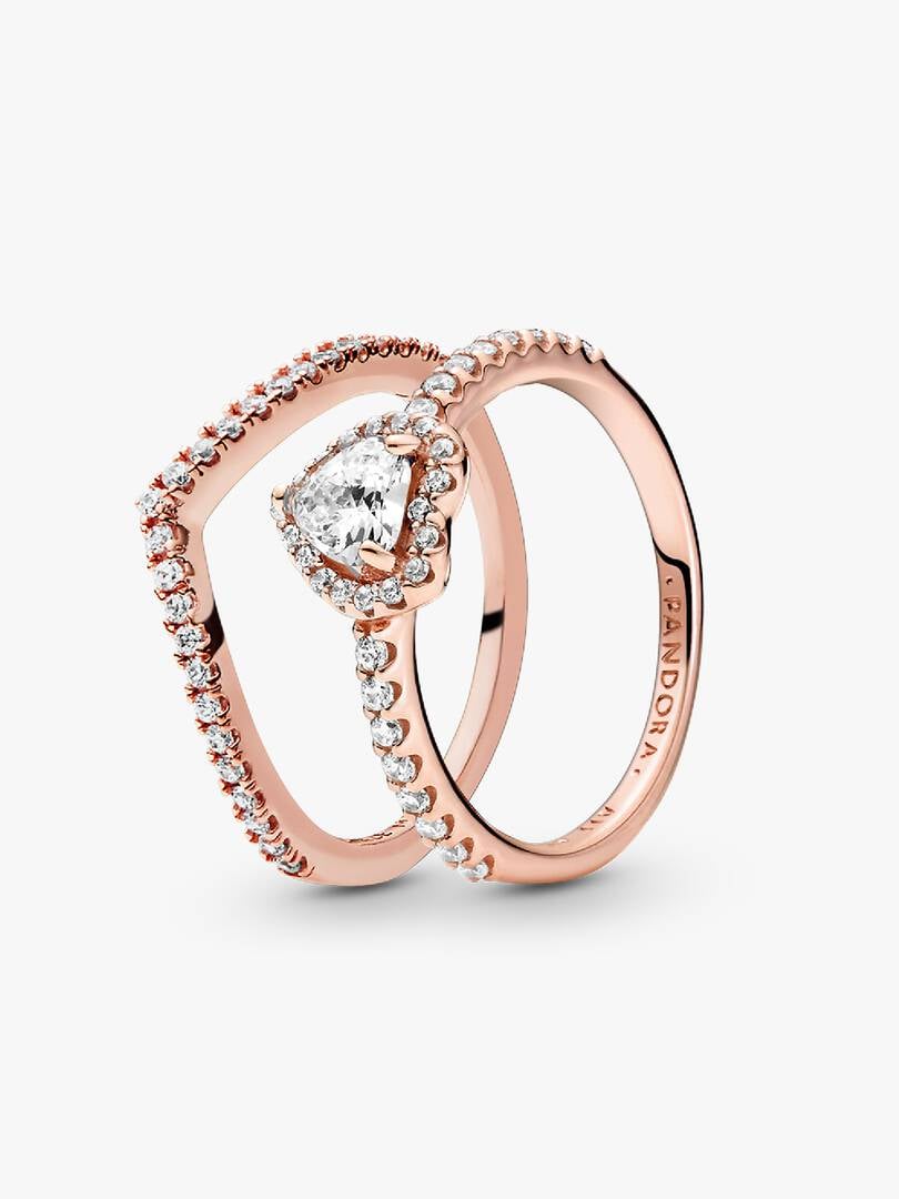 tone with a halo of cubic zirconia stones around it and along half of the band. It’s perfectly paired with the rose gold-plated Sparkling Wishbone Ring for a unique take on a classic look.