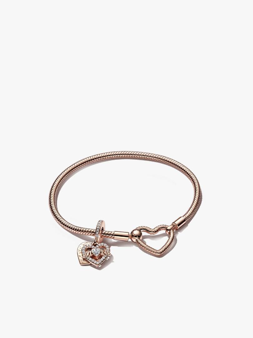 losure Snake Chain Bracelet, and a double dangle charm in 14k rose gold plating, with “M♥M” written in a cursive script in the center and set with a round cubic zirconia. The back dangle is engraved with the message “All of me loves all of you” in a repeated pattern. Gift this styled set as a celebration of the special bonds of love we share with the different mother figures in our lives.