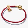 Moments Red Woven Leather Bracelet with clasp detail in brand Shine, an 18k gold-plated unique metal blend.