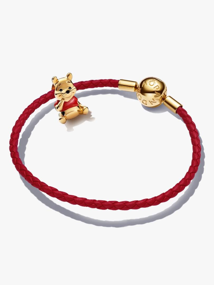 Joy. Kindness. Honey! Spread love the Pooh way with this vibrant bracelet set featuring the Disney Winnie the Pooh Bear Charm in 14k gold plating with red enamel shaping his iconic t-shirt. The charm comes on the brand