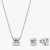 profiles, creating a modern aesthetic and opening the stone to the light for amplified sparkle. The 14k white gold pendant is fixed to a matching diamond-cut cable chain, adjustable to two lengths. The matching earrings feature a 0.50 carat round brilliant excellent cut lab-grown diamond in each earring, with a total carat weight of 1.00.This lab-grown diamond gift set is a universally wearable set that will elevate your looks day and night for years to come