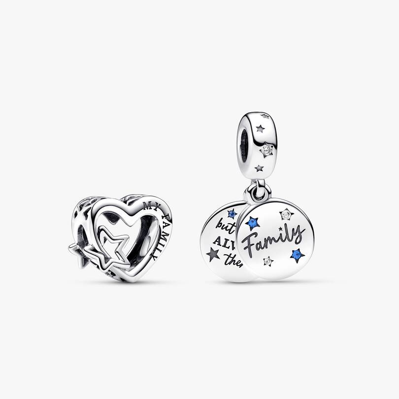 mily love double dangle charm, made with sparkling cubic zirconia and stellar blue man-made crystals that twinkle like stars. Show your family that love knows no distance.