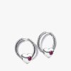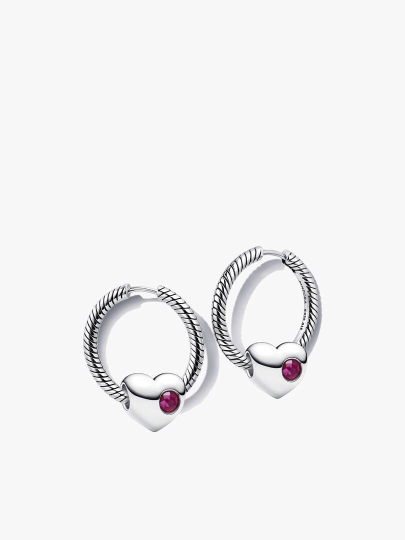 This set includes sterling silver hoop earrings featuring our signature snake chain pattern and an engravable heart charm with a flush-set red man-made crystal for October. Add a heartfelt message and make it yours.