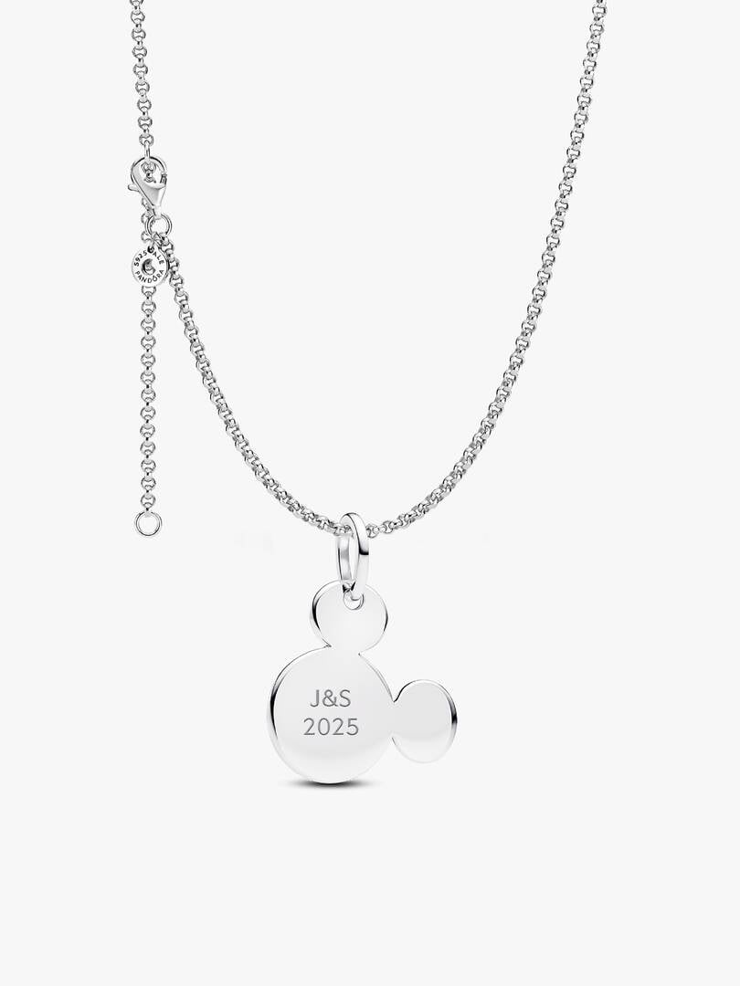 Make Disney magic yours with this sterling silver set, featuring the first-ever engravable Mickey Mouse pendant and an adjustable Rolo Chain Necklace. Perfect for adding iconic sparkle to your everyday.