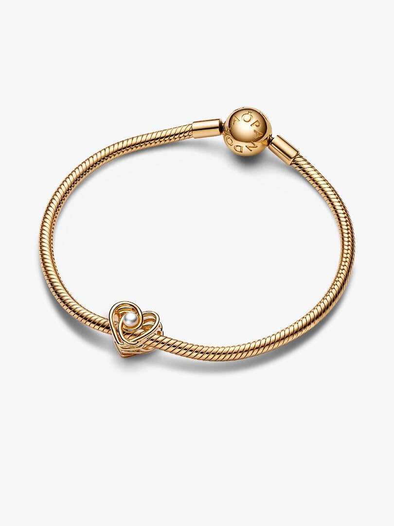 A precious symbol of love in its many forms. The Openwork Swirling Heart & Treated Freshwater Cultured Pearl Charm is crafted from 14k solid gold and takes the shape of an openwork heart, formed by multiple intertwining