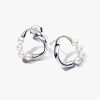 Organically Shaped Circle & Treated Freshwater Cultured Pearls Stud Earrings | Sterling silver