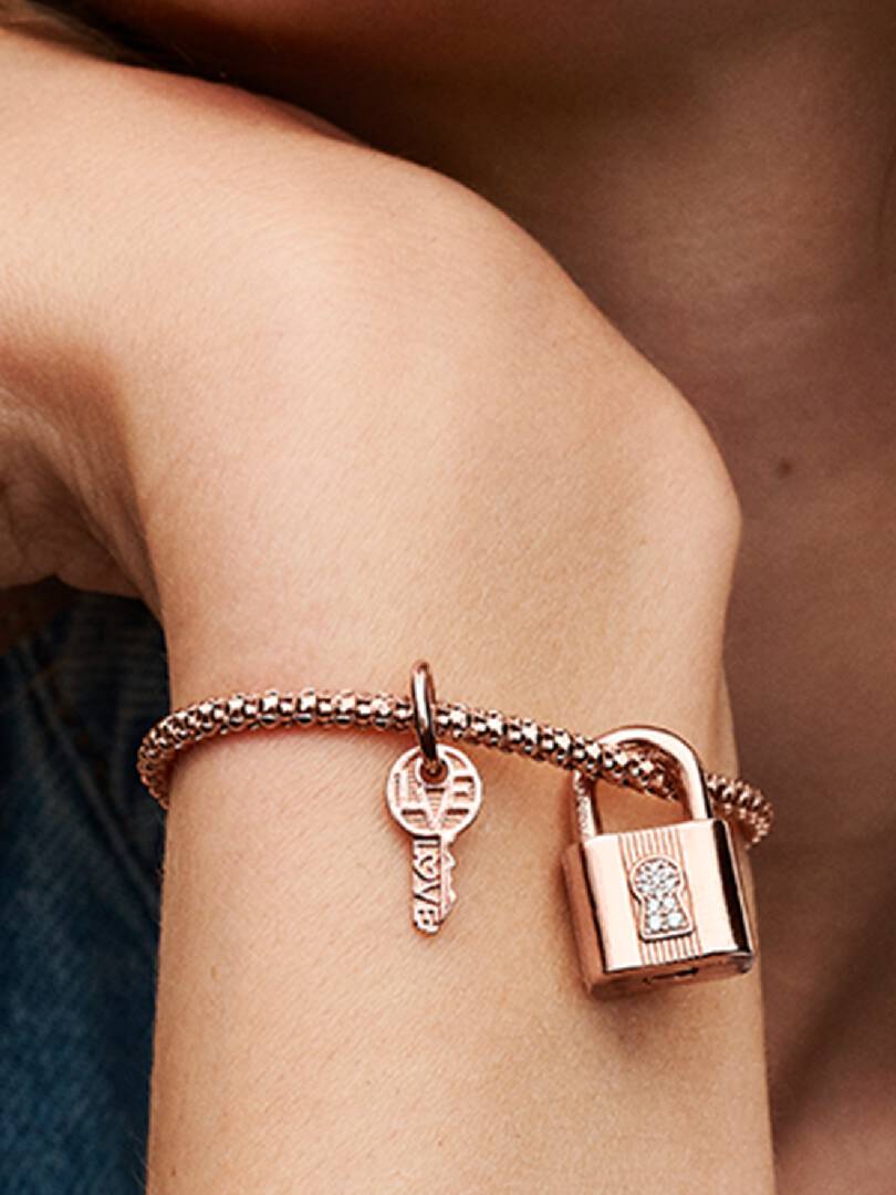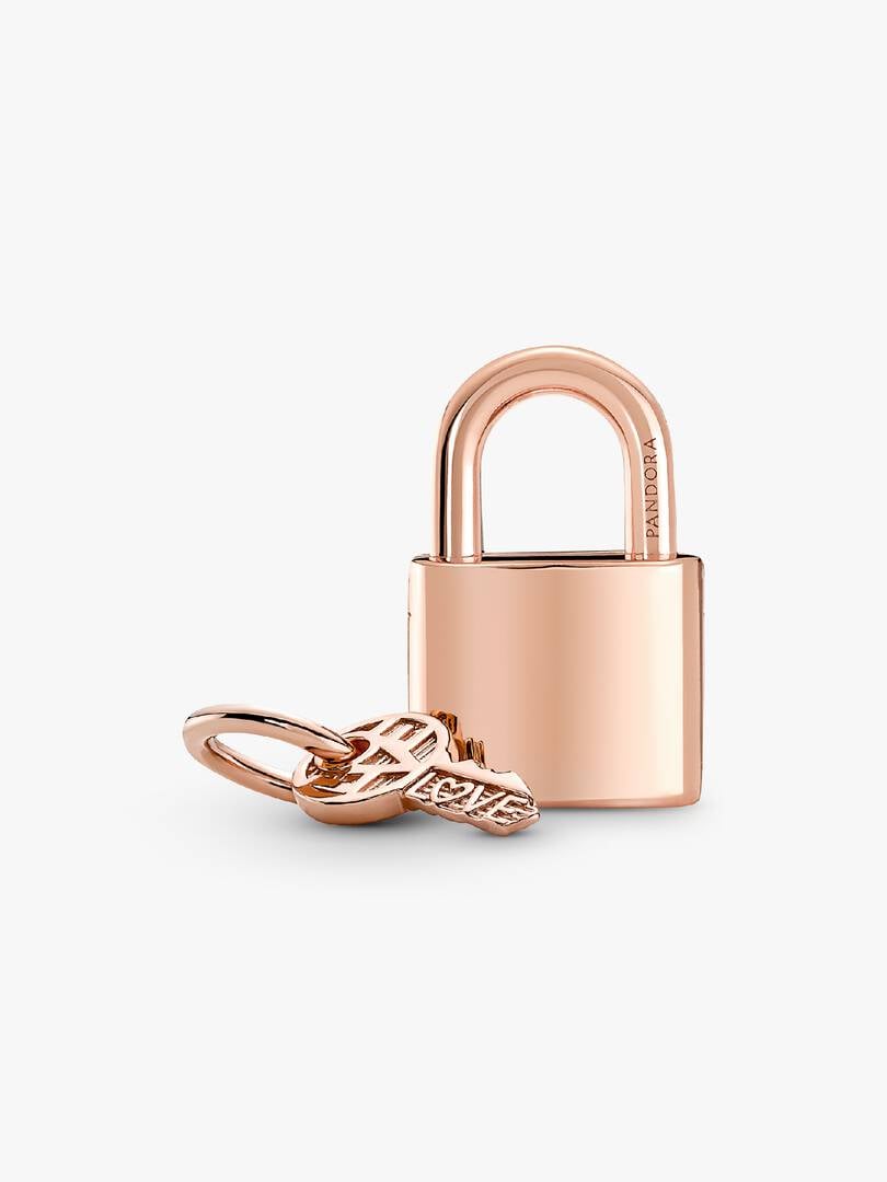 Padlock & Key Dangle Charm | Pendant | Rose gold plated