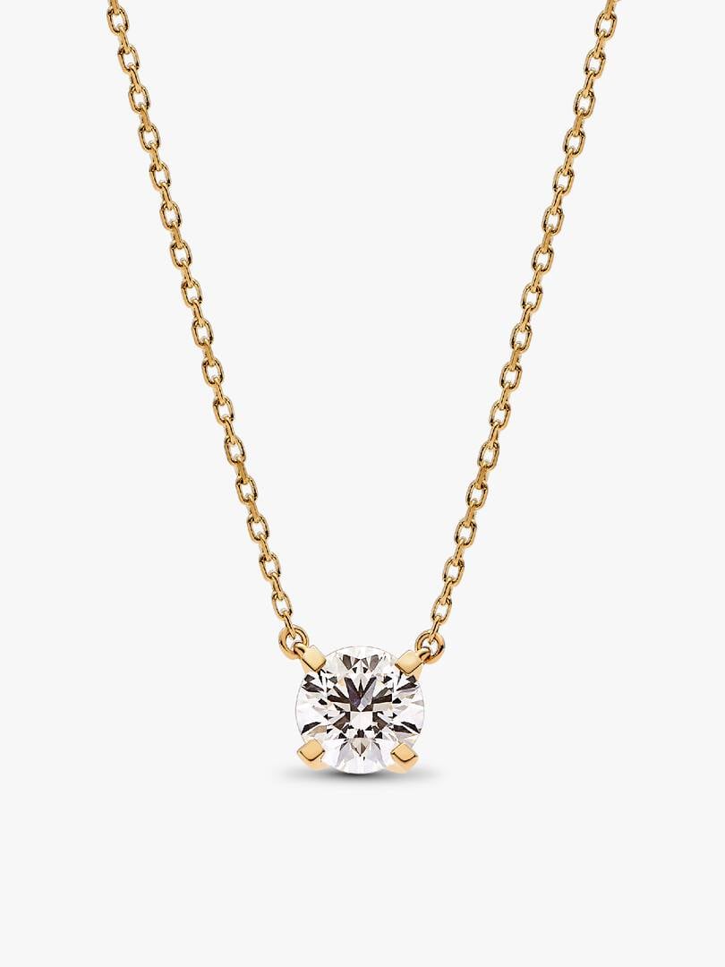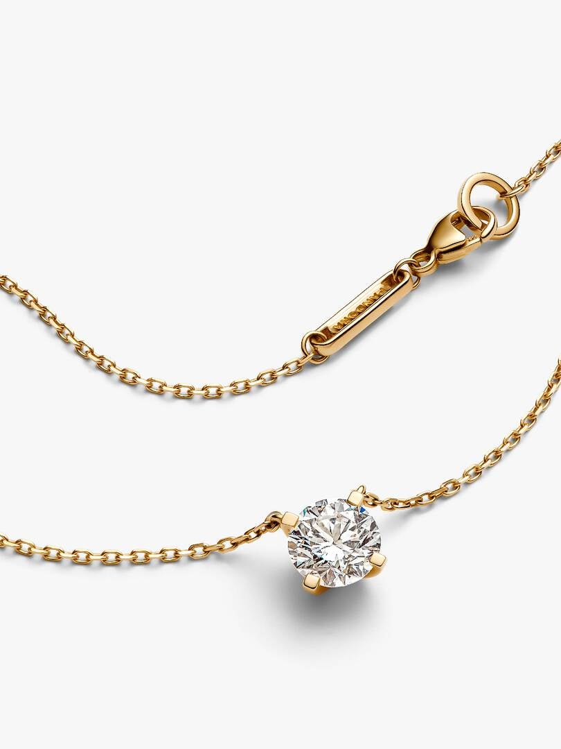 es, creating a modern aesthetic and opening the stone to the light for amplified sparkle. The 14k gold pendant is fixed to a matching diamond-cut cable chain, adjustable to two lengths. This lab-grown diamond necklace is a universally wearable piece that will elevate your looks day and night for years to come. Each brand Lab-grown diamond is treated with a post-growth color enhancement called annealing.