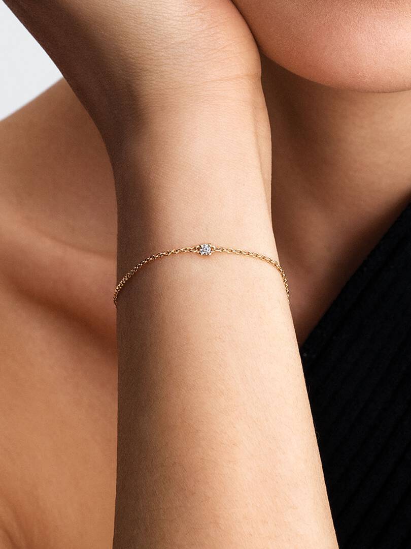 Meet your new “I’m never taking it off” bracelet. An adjustable, sliding chain wraps comfortably around the wrist, decorated at the center with one prong-set round brilliant-cut 0.05ct TW lab-grown diamond. This elegant