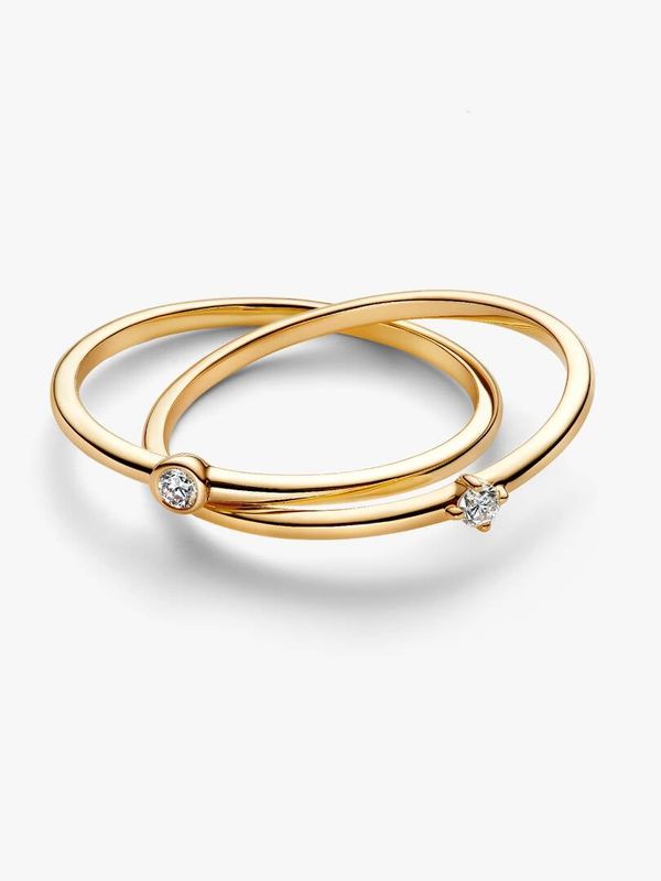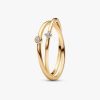 Crafted from 14k gold, this radiant ring features a unique crossover design, with two moveable bands that are forever connected. Two 0.07ct TW lab-grown diamonds scatter at the center, one prong-set and the other bezel-s