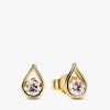 A pair of solid 14k yellow gold stud earrings each hand set with a 0.25 carat lab-grown diamond. A sparkling celebration of the infinite potential within all of us, these earrings feature a radiant round brilliant excell