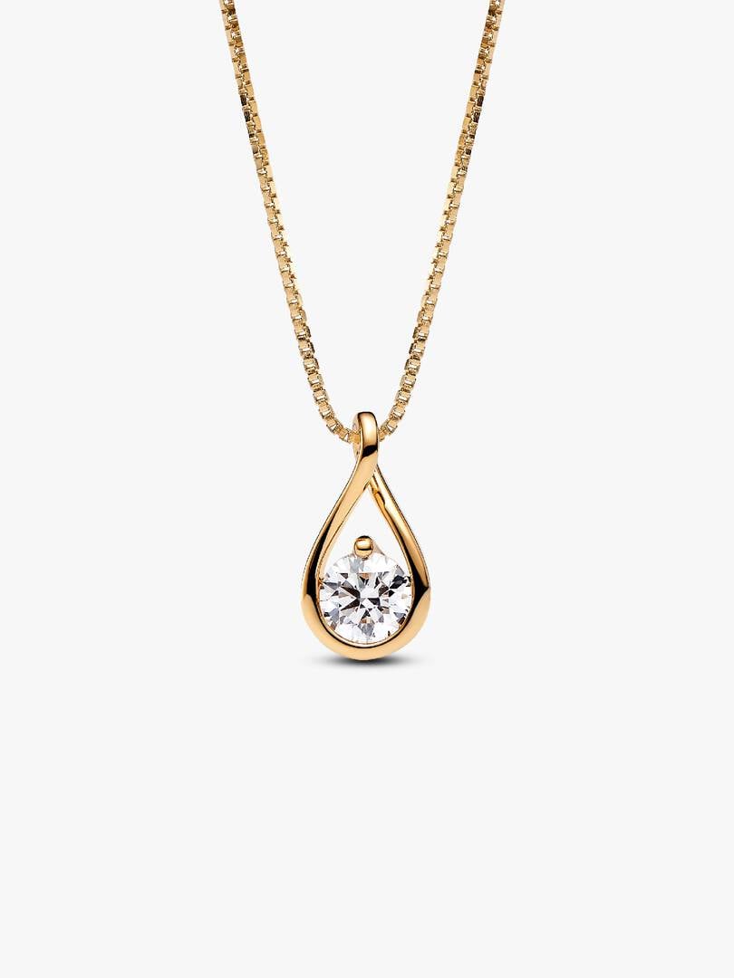 finite possibility the future holds, this pendant features a round, excellent cut lab-grown diamond in a modern infinity setting that flows around the stone and suspends it in mid-air. An elevated piece that will shine on any neckline. brand Infinite lab-grown diamonds at and above 0.50 carat are certified by IGI. Each brand Lab-grown diamond is treated with a post-growth color enhancement called annealing.