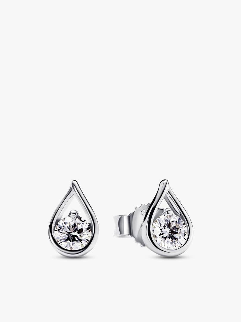 A pair of solid sterling silver stud earrings each hand set with a 0.25 carat lab-grown diamond. A sparkling celebration of the infinite potential within all of us, these earrings feature a radiant round brilliant excell