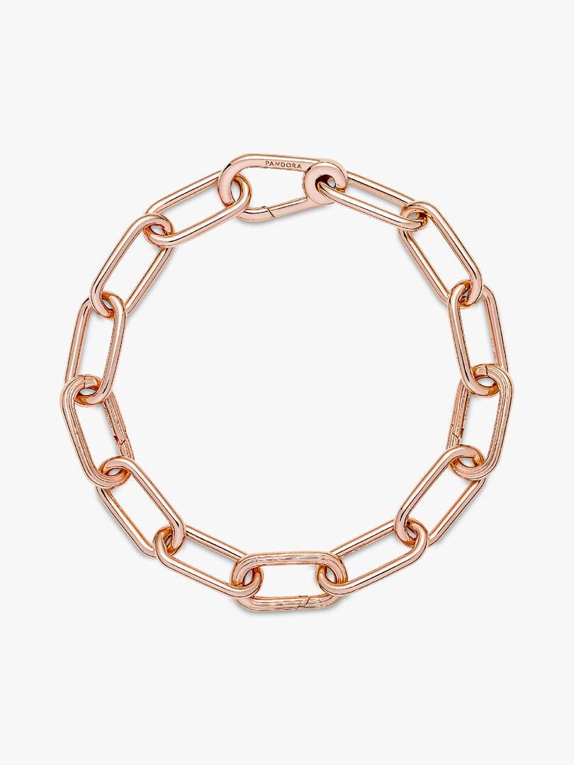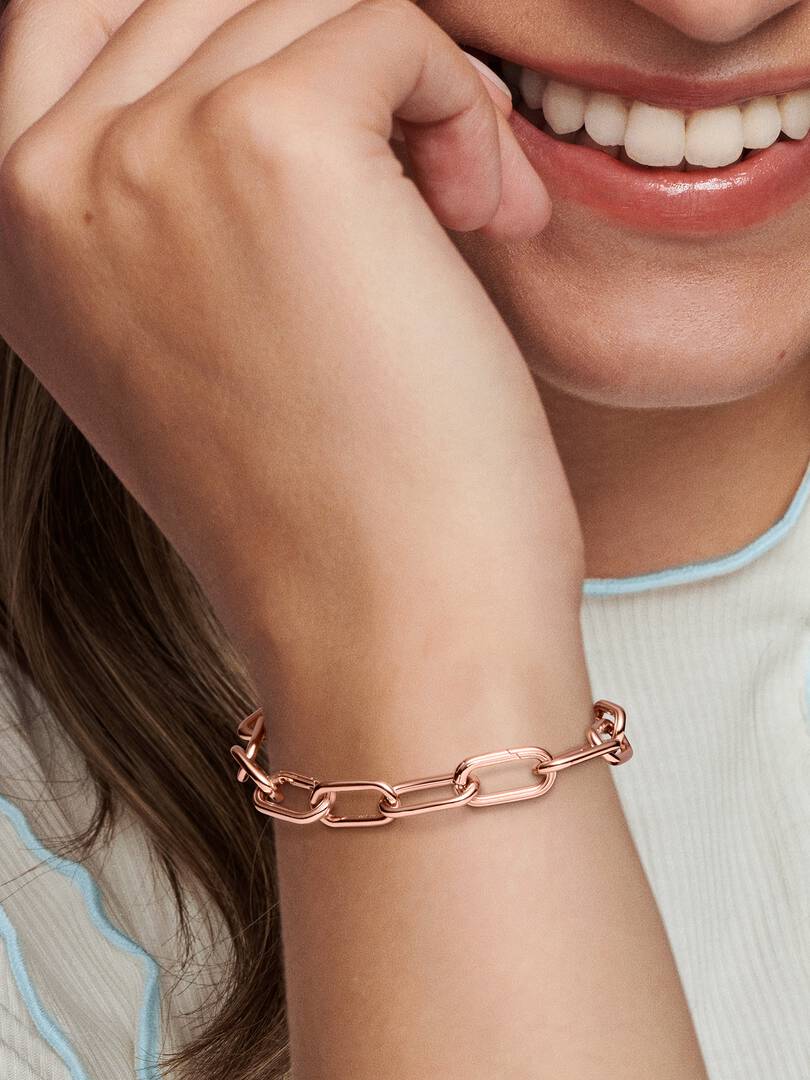 Wear your mantra on your wrist. Our 14k rose gold-plated brand ME Medium-Link Chain Bracelet holds endless styling possibilities. The bracelet features three openable links, designed with a grooved surface to set them