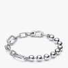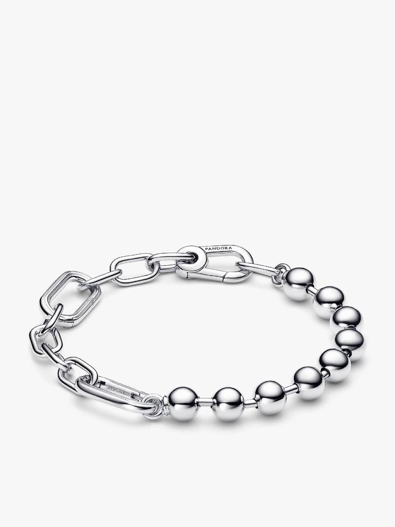 The brand ME Metal Bead & Link Chain Bracelet proves that opposites attract. Pairing two essential styles – metal beads and chain links – this sterling silver bracelet can be customized by styling the links with mini d