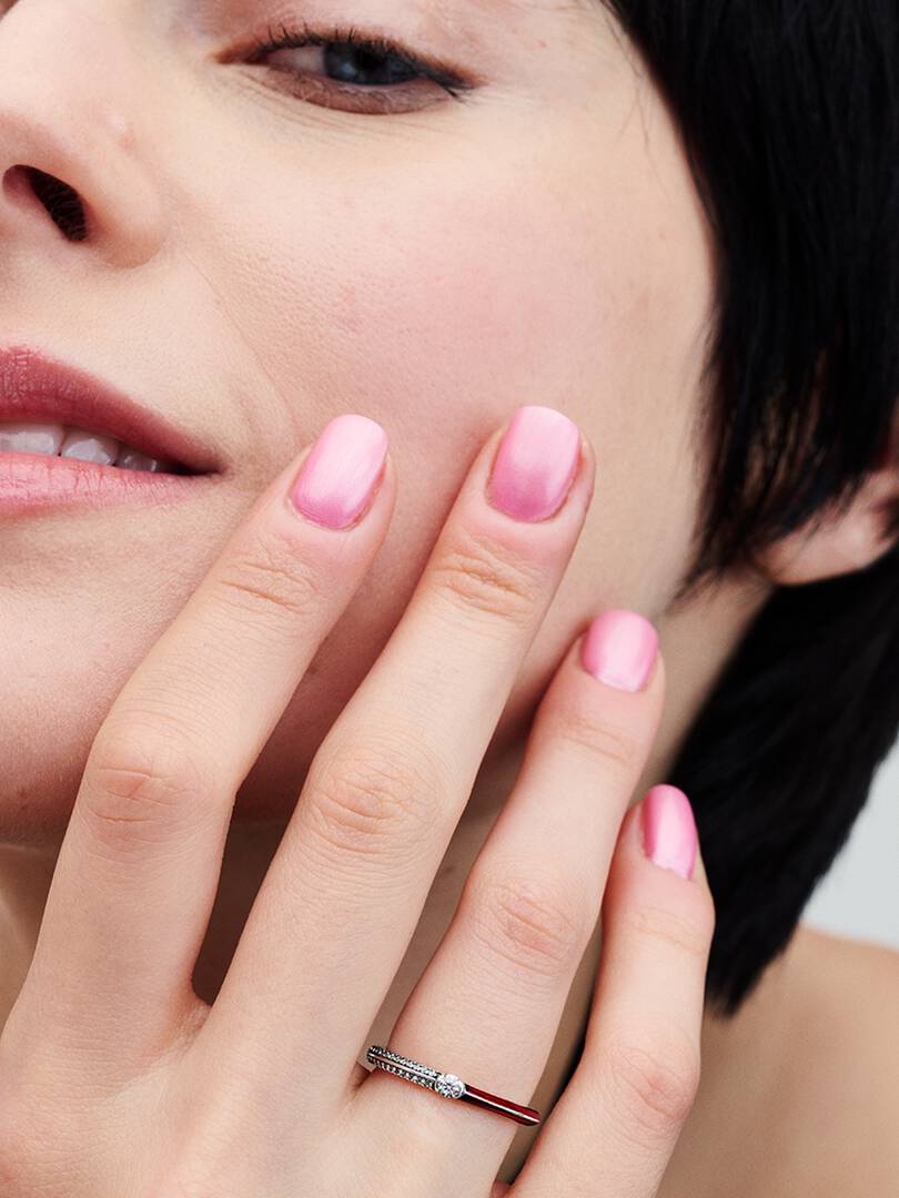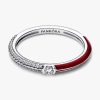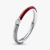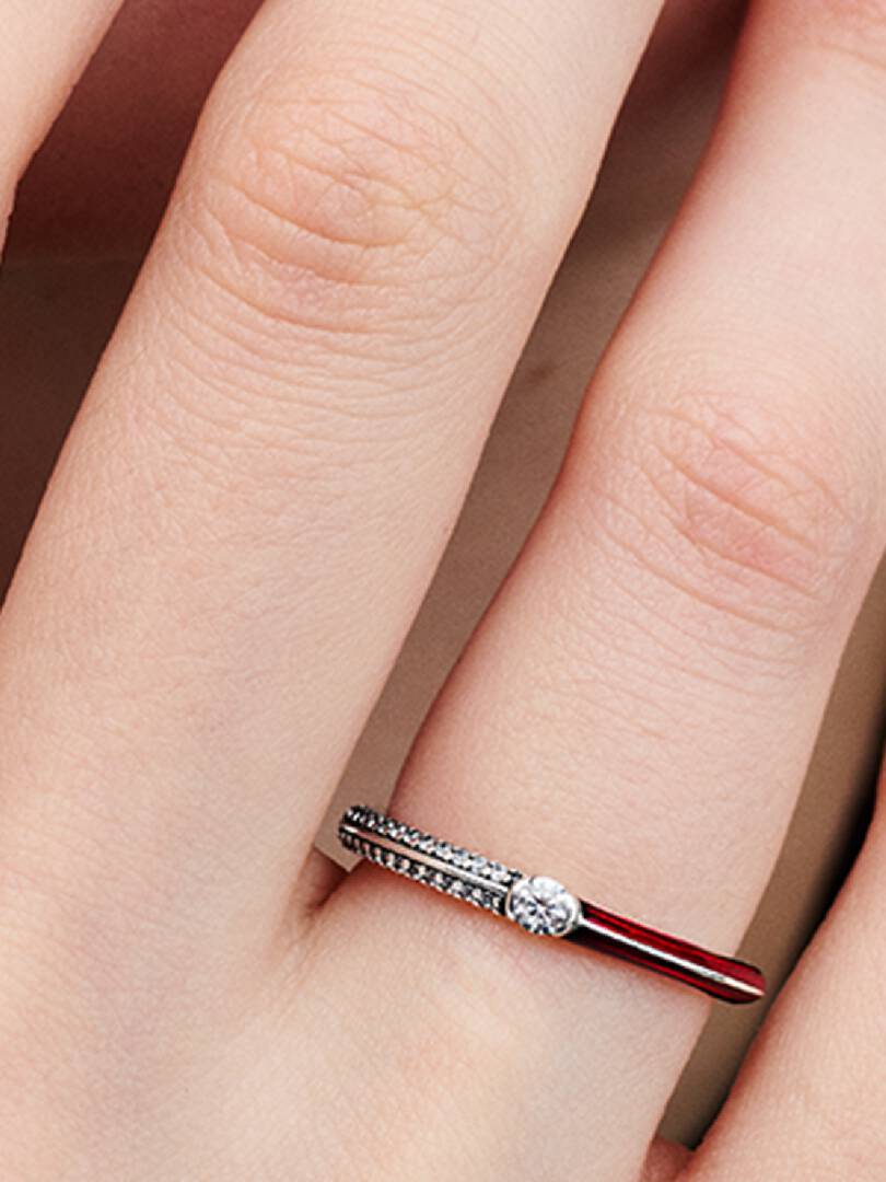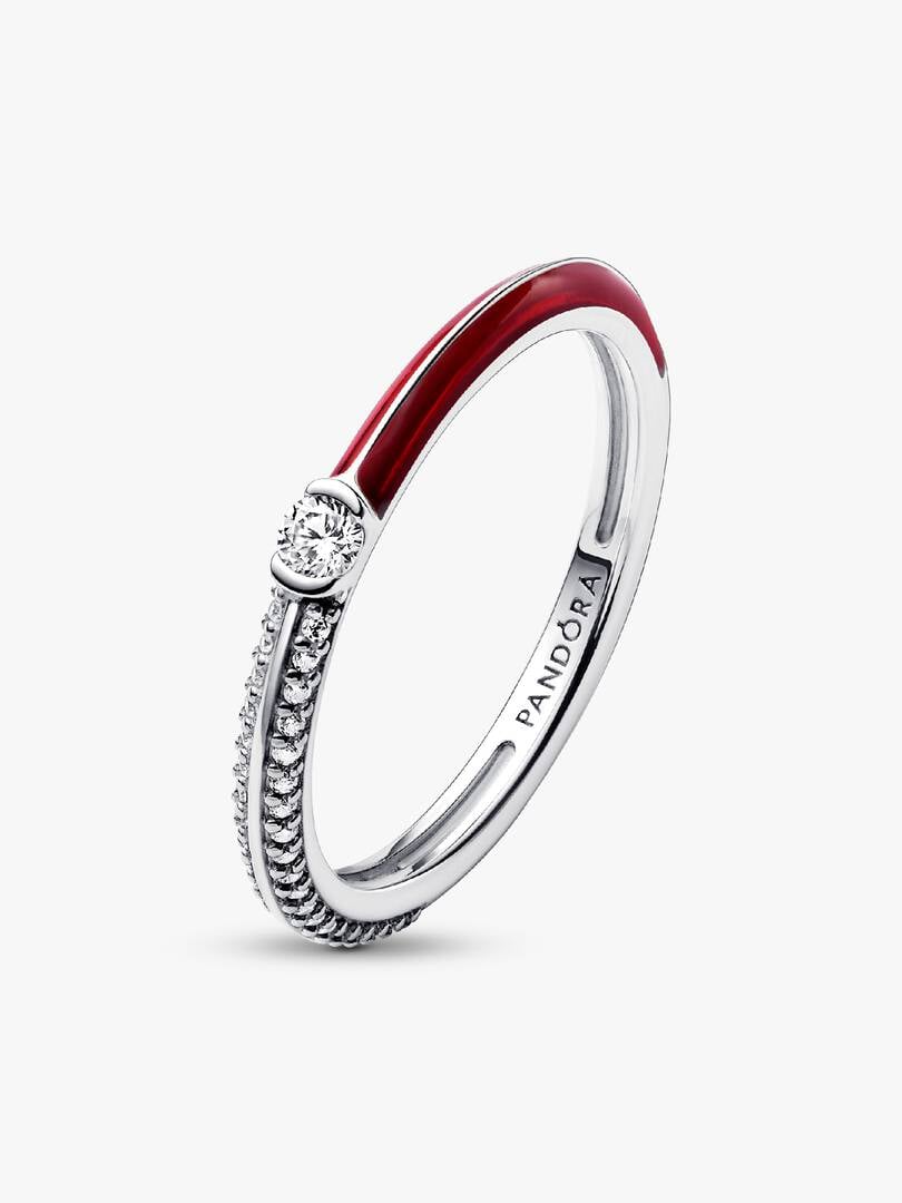 Add sparkle and colour to your stack with our brand ME Pavé & Red Dual Ring. A round brilliant-cut cubic zirconia sits between a row of shimmering pavé and hand-applied transparent glossy red enamel on a sterling silve