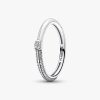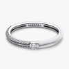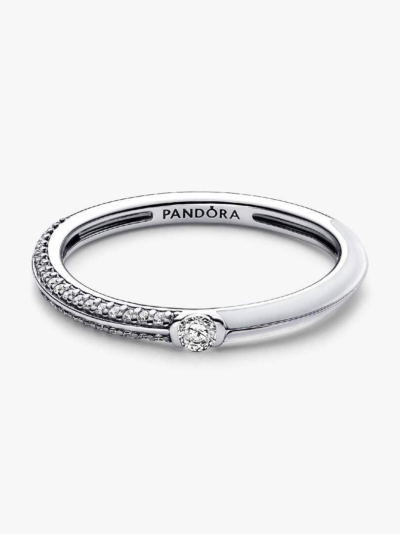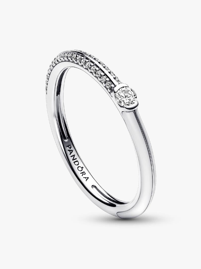 Brighten up your stack with our brand ME Pavé & White Dual Ring. A round brilliant-cut cubic zirconia sits between a row of shimmering pavé and hand-applied transparent glossy white enamel covering 2/3 of the sterling