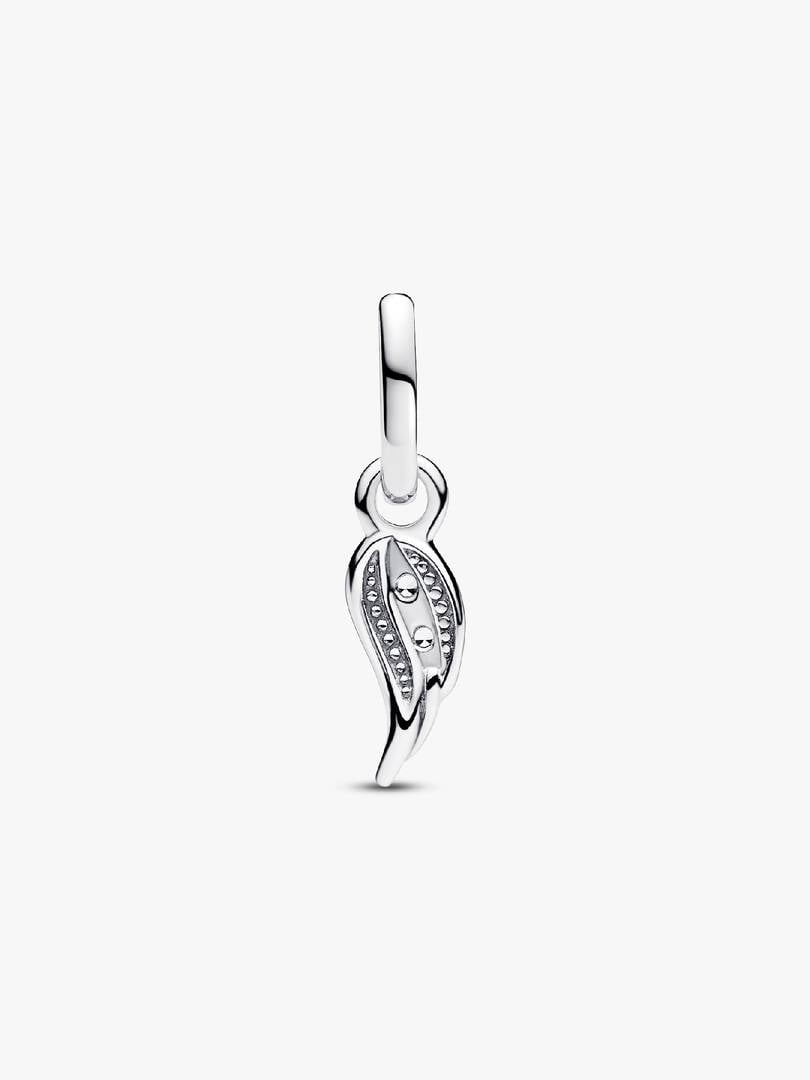 two curved rows of microbeading. The rich texture on each side contrasts prettily with the polished sides of the wings and the link-shaped bail. This angel wing mini dangle charm will bring an ethereal touch to your look and remind you to let your dreams take flight. Compatible with brand ME and brand Moments.