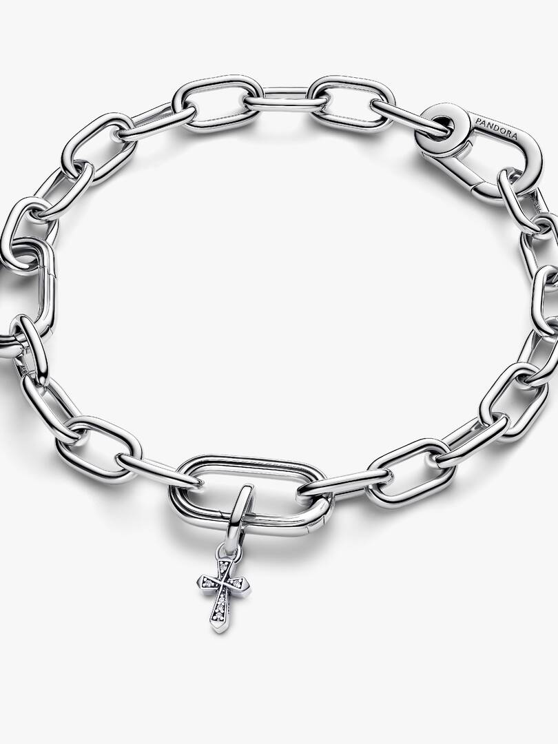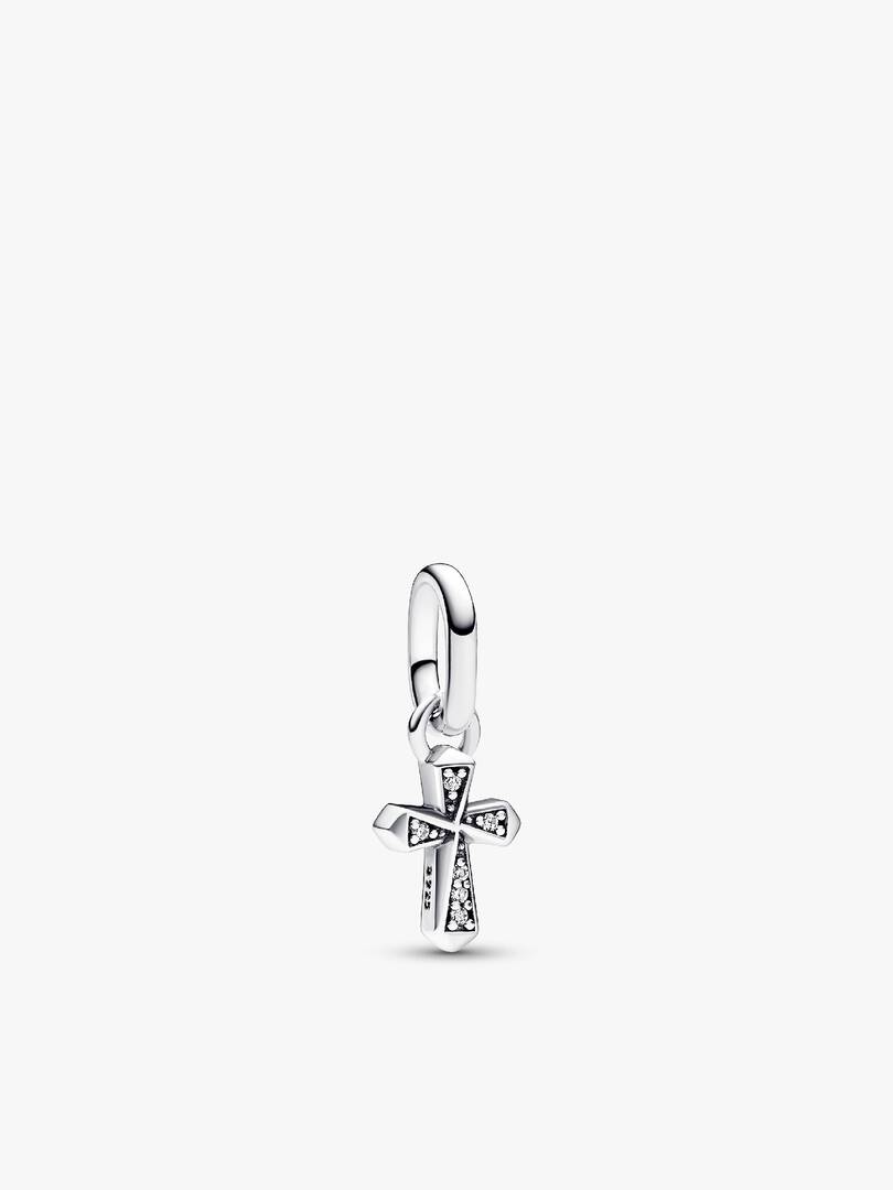 Bring a 90s edge to your vibe with the brand ME Sparkling Cross Mini Dangle Charm. Putting a fresh spin on a timeless symbol, this sterling silver cross mini dangle charm has microbeads on one side, sparkling stones on