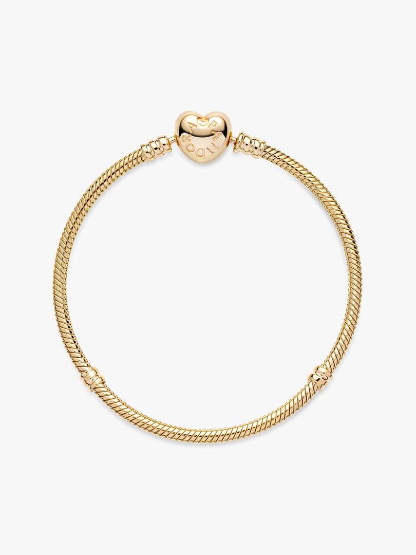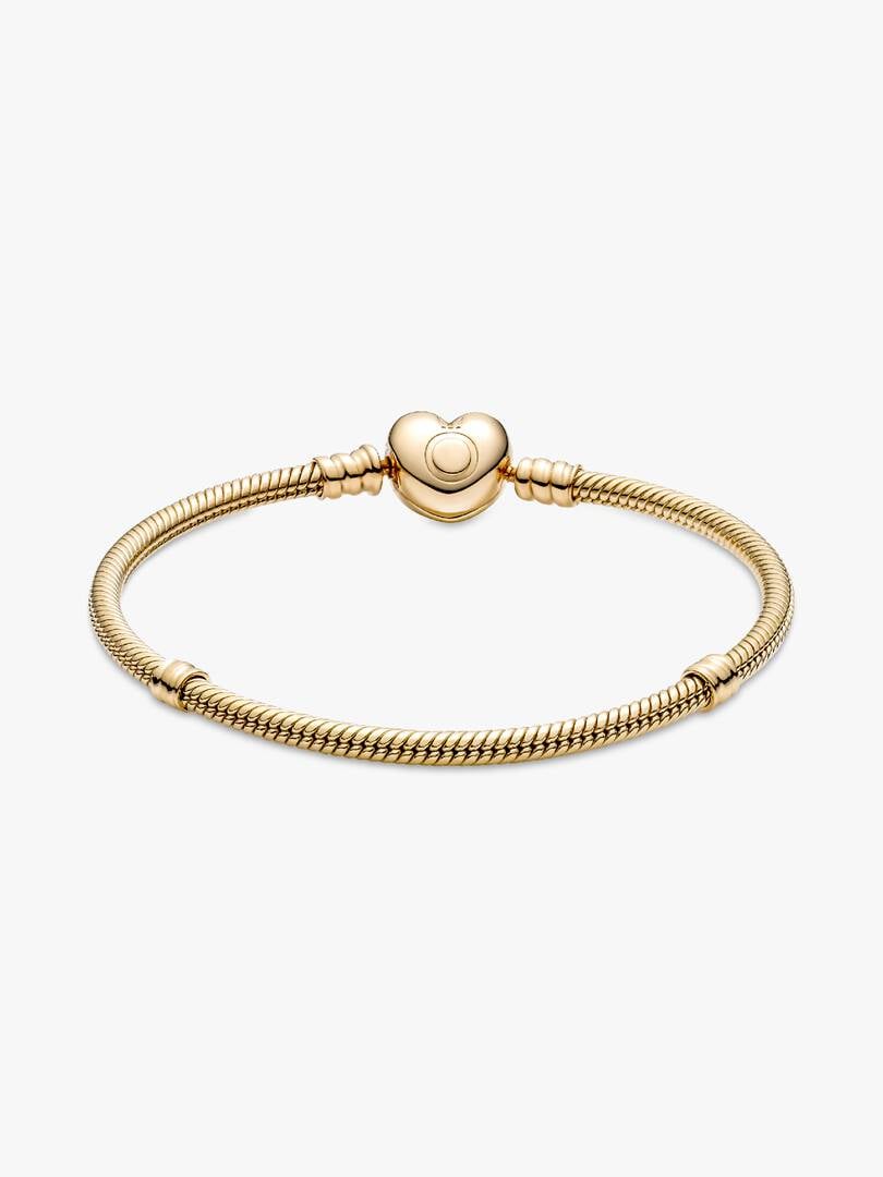 Take pride in your style with the brand Moments Heart Clasp Snake Chain Bracelet. Hand-finished in 14k gold, this design includes a heart-shaped clasp. Featuring our iconic snake chain, the bracelet has threaders and s