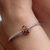 n the middle, which features the brand logo on its three outer sides. Each end of the bangle includes the brand Crown O monogram. The bangle is precisely sized for optimal performance and fit and is not designed to be flexed and twisted when put on and removed.