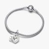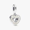 An elegant gift for a mom who loves pearly tones. The Pearlescent White Heart Double Dangle Charm is crafted from sterling silver and features a cut-out heart shape adorned with a row of bioresin man-made mother of pearl