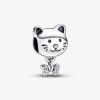 Let your love for your feline bestie shine with the Pet Cat & Bow Charm. Crafted from sterling silver, this retro piece with a modern touch is decorated with engraved lines on the face and sparkling pavé on the bow dangl