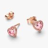 Add a romantic touch to your look with the Pink Elevated Heart Stud Earrings. Heart-shaped pink stones take center stage in this set of 14k rose gold-plated earrings. A sparkling pavé border further accentuates the eleva
