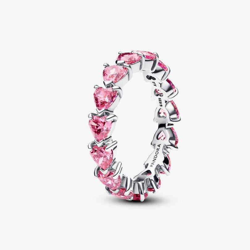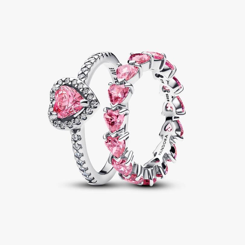 Add love to your ring stack with two sterling silver rings that share heart motifs and pink hues – the Band of Pink Hearts Ring and the Elevated Pink Heart Ring. Perfect paired together or stacked with more.