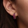 Add a touch of sparkle to your look with these delicate hoop earrings, featuring a row of phlox pink man-made crystals. Express yourself with this beautiful design.