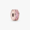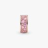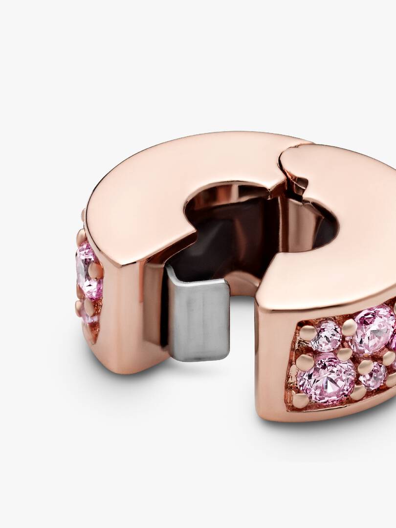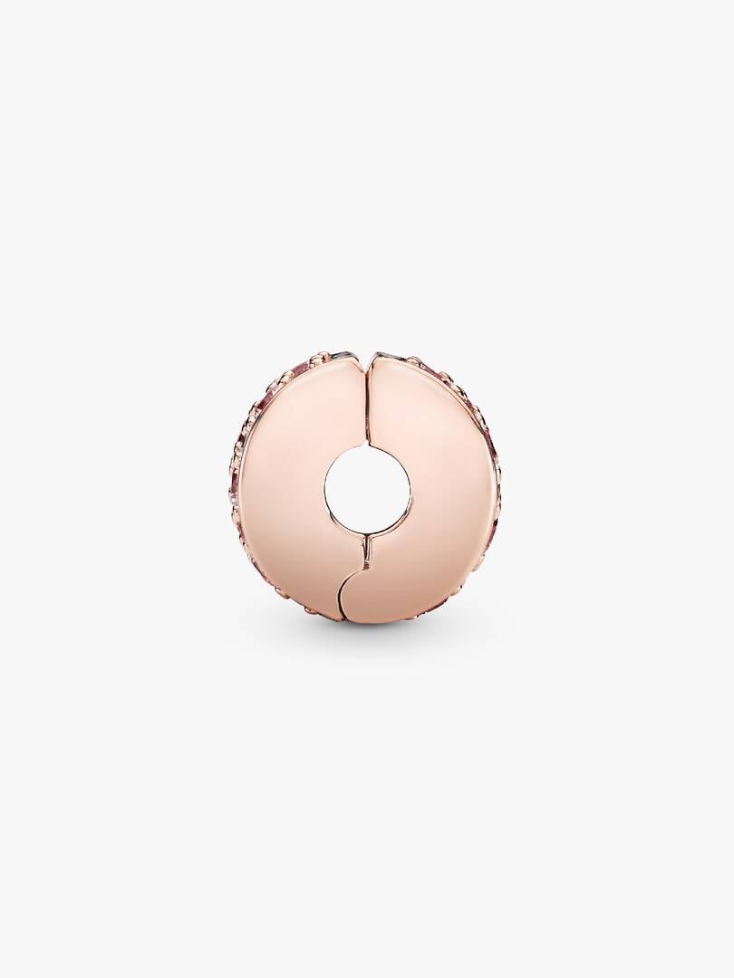 é-set with pink cubic zirconia that lend sparkle to your look. Clip multiple charms onto your bracelet to create a symmetrical styling, or add a single piece for a minimalist look. Your mood sets the tone. This clip charm features a silicone grip, does not fit onto threads (two raised charm dividers.) This charm can be styled anywhere else on the bracelet.