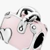 Pack your story on your favorite brand Moments bracelet together with this bag charm. Shaped as a suitcase detailed with pink enamel hearts, it’s detailed at the corners as well as on its luggage tag with the brand c