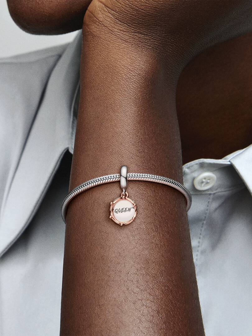 ouble dangle queen charm lets you stand out as the queen of your world. It also makes a fitting gift for the amazing queens in your life who deserve a crown of their own.