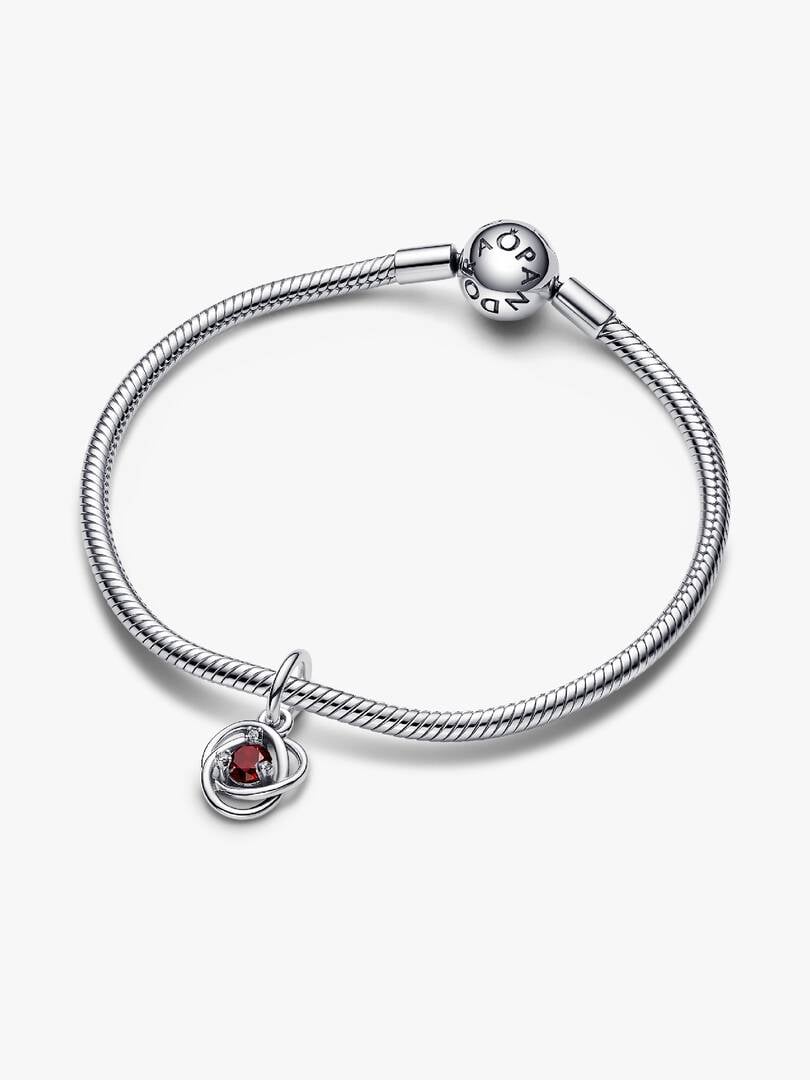 This intricate Red Eternity Circle Dangle Charm is a must-have infinity charm for your brand Moments collection. Crafted in lustrous sterling silver, it features an openwork infinity braid decorated with a central red
