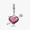 A charm for all the lovestruck hearts out there! The Red Heart & Arrow Murano Glass Dangle Charm features a red heart crafted from Murano glass, struck by a sterling silver Cupid’s arrow. The arrow spells out the word “l