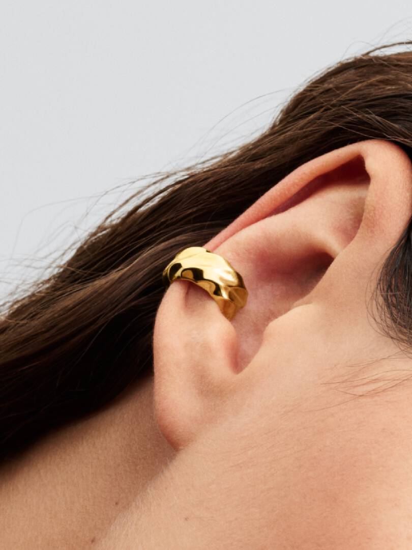Make a statement with a stunning ear cuff that celebrates individuality and self-expression. Its unique rippled design adds a touch of sophistication to any outfit.