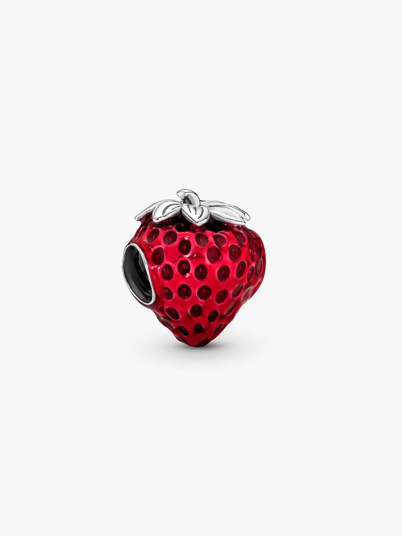 Add the lush flavor of fruit to your look with this sterling silver strawberry charm, hand-finished with transparent red enamel and lifelike seed details created by grooved indents under the enamel. Style it on your favo