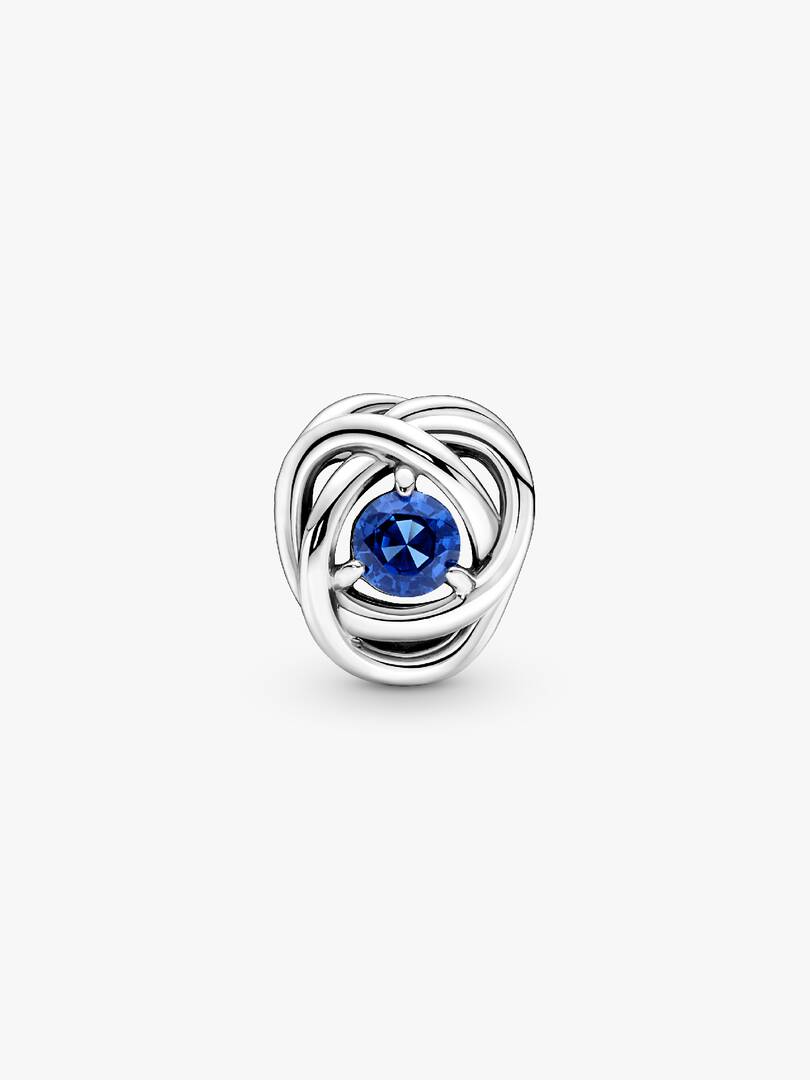 Add a pop of color to your bracelets and pendants with this Blue Eternity Circle Charm. This special piece is made in the shape of an infinity braid and is set with a deep blue crystal at its center. Symbolizing eternity