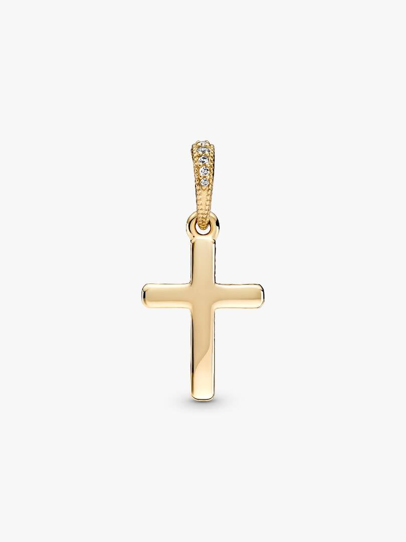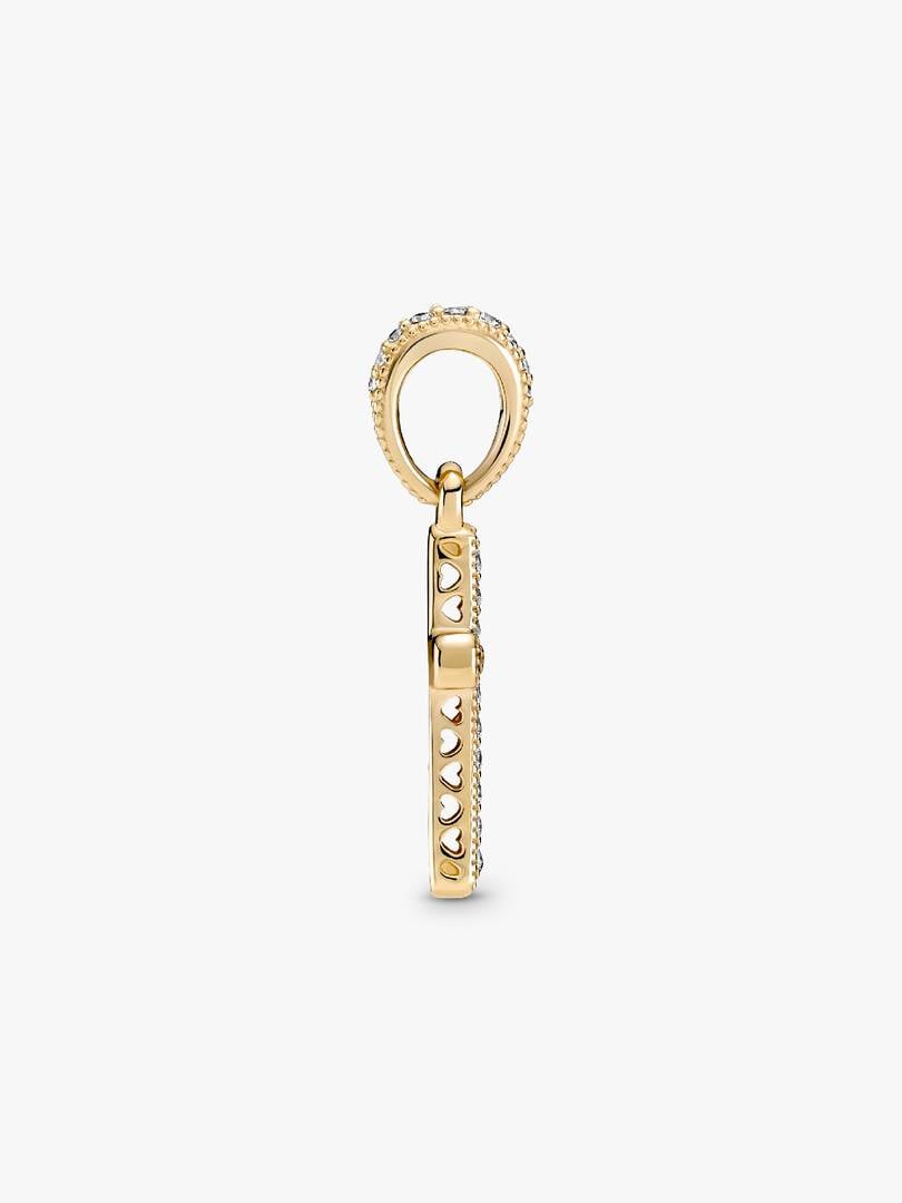 Introduce a classic piece of jewelry to your collection with the Sparkling Cross Pendant. Hand-finished in 14k gold, the front of this design is set with clear cubic zirconia, with a polished reverse side. Cut-out hearts