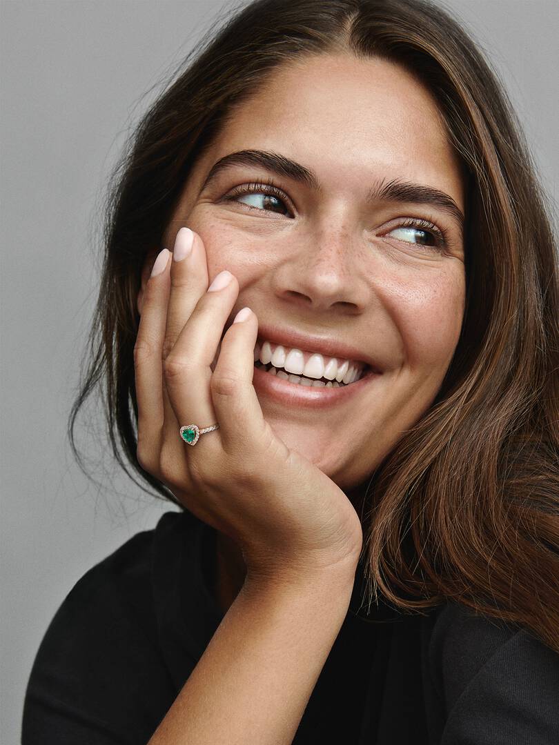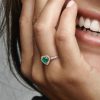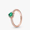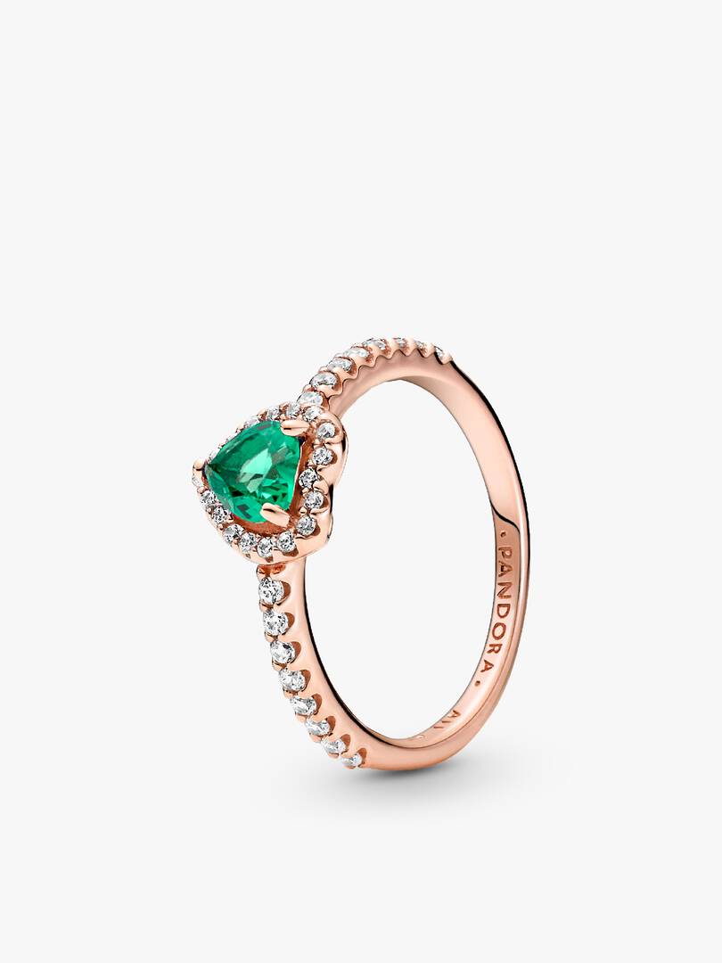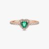 es a green heart-shaped central, elevated stone. Clear cubic zirconia create the halo and decorate half of the ring band, with the brand logo inside the shank. Stack this ring with hand-finished styles in sterling silver for a statement mixed metal look.