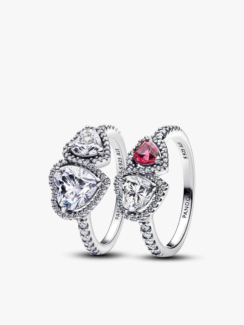 Sparkling Halo Hearts Ring Set | Sterling silver