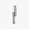 Opt for modern minimalism with the Sparkling Overlapping Ring. This Sterling Silver ring features an asymmetrical design where the square ends of the band slightly overlap to create 90-degree angles. The outer band featu
