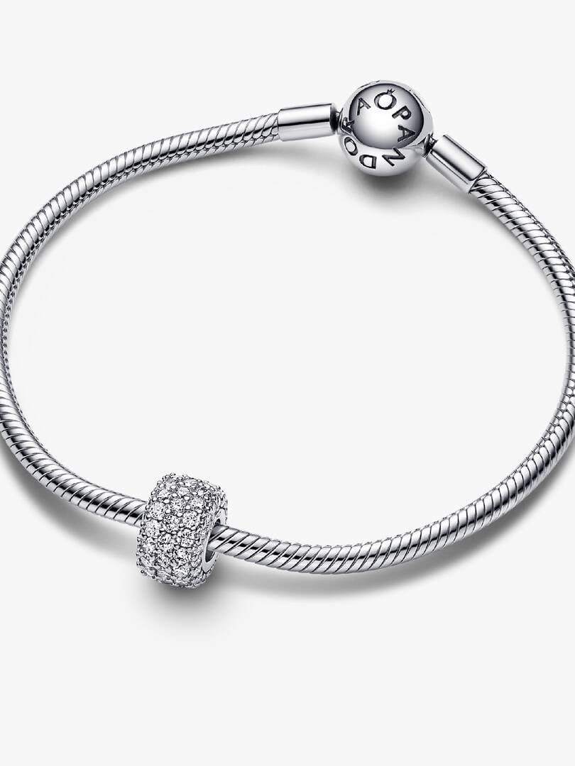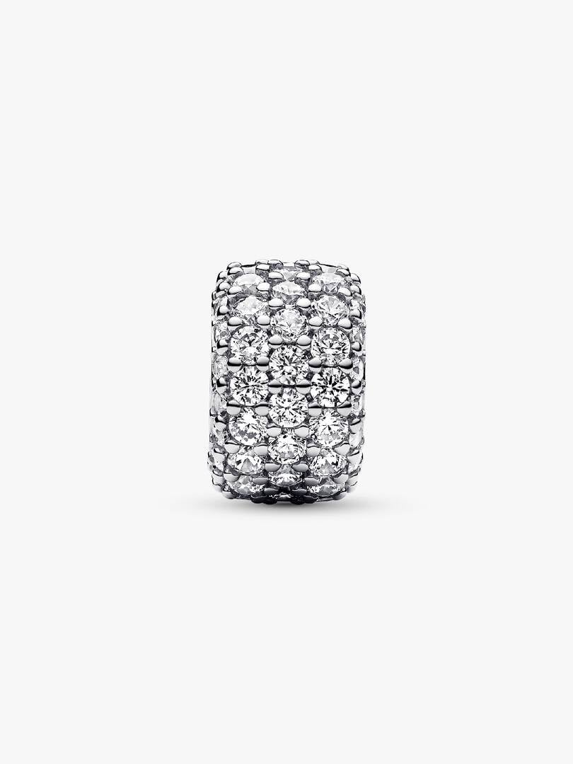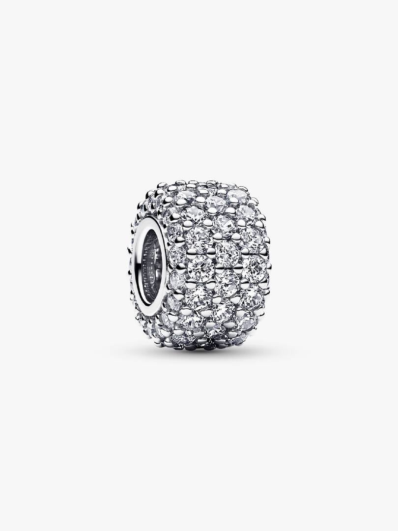 Shine on from every angle with the Sparkling Pavé Triple-row Charm. Crafted from exactly 85 pavé-set round brilliant-cut clear cubic zirconia, this sterling silver charm from our brand Moments collection delivers a tou