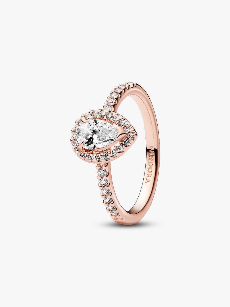 Sparkling Pear Halo Ring | Rose gold plated