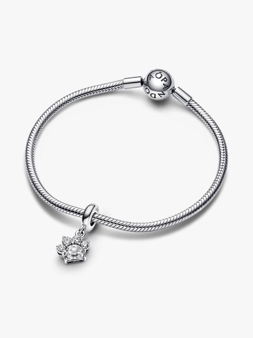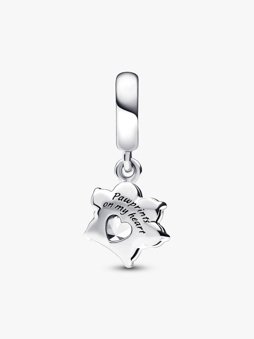Sparkling Pet Paw Print Dangle Charm | Pendant | Sterling silver