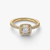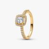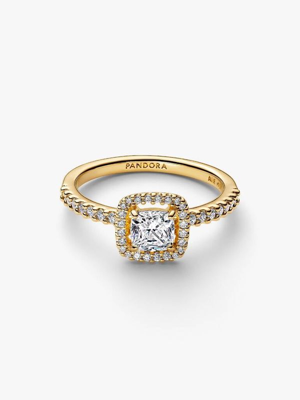 Sparkling Square Clear Halo Ring | Gold plated