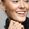 ime, the ring’s pear-cut centrepiece is surrounded by smaller stones that continue around the band. Try stacking yours with ring bands in contrasting metals for a fresh take on a classic style.